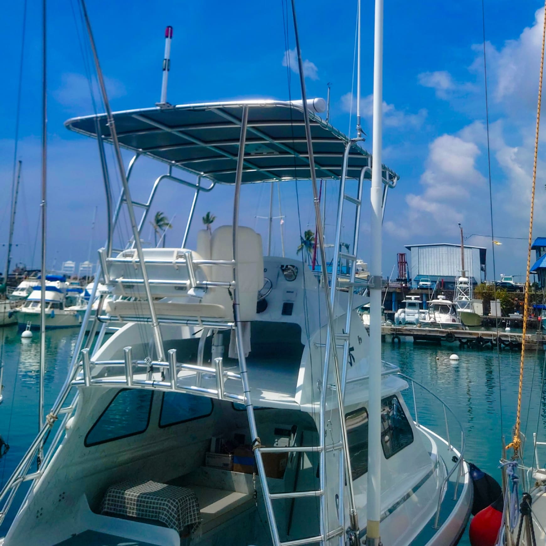 メインラインから切り離され、ルアーラインで釣り上げるところが漁業スタイルとの大きなちがい。ハワイで主流のスタイル。