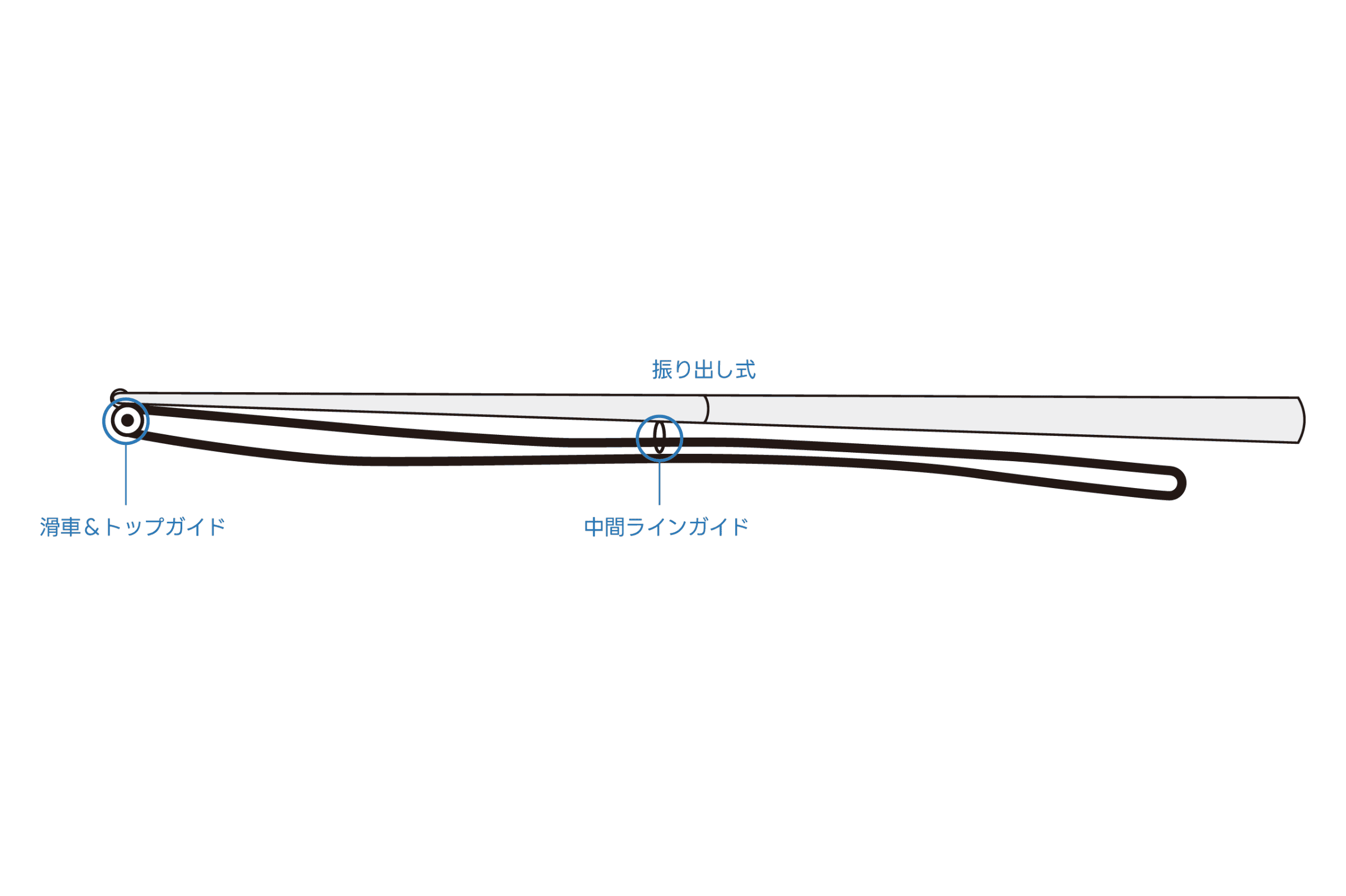 竿元は強固で竿先は柔軟な設計を採用。アウトリガーロッドの新スタイル。